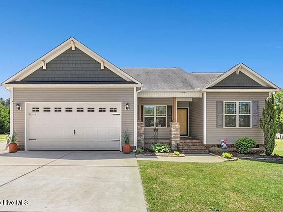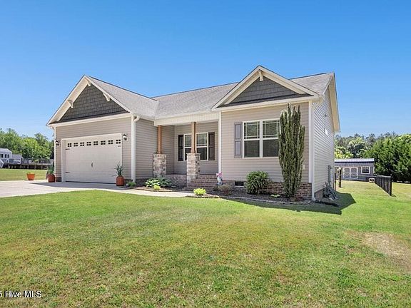 Welcome to this rare find one-level RANCH-style home situated on just over 2 acres of peaceful paradise, with no subdivision and only one owner. A charming covered front porch with elegant stone column accents welcomes you, while extra parking to the left of the home ensures plenty of space for all. Inside, luxury flooring flows through the main living areas and the primary bedroom. The formal dining room features beautiful wainscoting, and the spacious kitchen offers granite countertops, abundant workspace, a stove, microwave, dishwasher, refrigerator, a convenient eat-at bar, and a pantry. The family room is highlighted by a stone-accented fireplace with a raised hearth and easy access to the sunroom and swimming pool. The primary bedroom features a tray ceiling, a large walk-in closet, and a luxurious en-suite bath with dual vanities, a soaking tub, a separate shower with bench seating, and a linen closet — all tucked privately on one side of the home. Two additional bedrooms with new carpet and a full bath with tile floors and cultured marble countertops are located on the opposite side for added privacy. A walk-in laundry room with tile flooring, cabinetry, and shelving adds extra convenience. Relax in the sunroom with its electric fireplace and luxury flooring, or step outside to a spacious deck with a partially covered area and serene lighting, overlooking the fenced-in swimming pool area. Beyond the chain-link fence, the yard extends even further, offering ample space to explore. A Storage Shed with shelving and a loft area provides excellent storage or project space. This beautiful property is the perfect blend of comfort, privacy, and outdoor enjoyment — welcome to Home Sweet Home