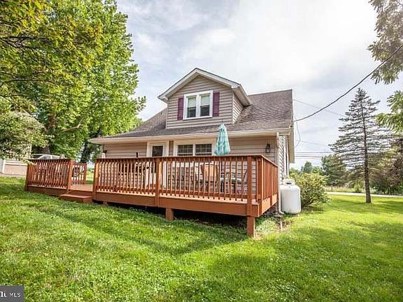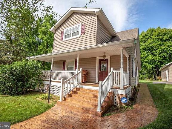 Charming cape cod style home with 3 bedrooms and 2 full baths on 1 1/4 acres. This home has been updated throughout the years to include: Kitchen - cabinetry, black granite countertops, black stainless steel electric appliances, crown molding and tile flooring. The foyer, living room and formal dining room has refinished hardwood flooring, chair rail / crown molding. The living room has a gas heating fireplace with brick surround. The first floor also includes one full bath with pedestal sink and shower stall, the laundry area with built in storage closets and the "L" shaped staircase leading from the foyer to the second level. The second floor includes 3 bedrooms and full bath with tub/shower, new sink and vinyl flooring. The paint and electrical fixtures throughout the house have been updated as well. The entire first floor boasts 9'+ ceilings. The unfinished basement is partial crawl space and open area that can be accessed through the exterior or kitchen doors. The exterior has been updated with siding, architectural shingles, stamped concrete sidewalk and steps. The paved driveway leads to the oversized 30x30 detached two car garage. There is also a 10x12 outdoor building for storage. Both HVAC units have been updated (2 zone). Partial electric base board heat as well. This property backs up to the USGS (Fish Hatchery) property. **Buyer pays Transfer Stamps. Agent is owner.