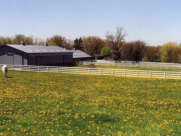 Bring your horses home or start a small training program! This property has it all. The main barn offers 9 stalls with a center isle, tack room, wash rack, full bath, storage area, hay loft and workshop. Next up is the Morton built indoor arena that measures 102 x 54 with sand & free footing. Plus several pasture areas as well. Groomer quarters possible. The main home features 4 bedrooms and 2 1/2 baths. The home boasts a formal living room with a gorgeous stone fireplace, the dining is very open and perfect for entertaining. The family room offers vaulted ceilings with floor to ceiling windows to enjoy the horses as they graze in the pastures. The eat in kitchen is perfect for any chef. It also has a desk area to stay on top of your daily tasks. The master suite features a nice bath and large walk in closet. The remaining bedrooms share a hall bath. Enjoy the outdoors on the large deck. The furnace was new in 2018 and the AC in 2019. The tankless hot water heater was installed in November 2019 with the water softener replaced in September 2019. The roof has a transferable warranty. All the major items are covered.