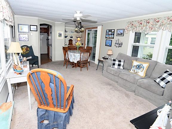 Bright and beautiful updated 2 bedroom, 2 bath manufactured home includes sun room and deck located in Great Hill Estates Manufactured Housing Community with Association Pool and Clubhouse. Newer carpeting,kitchen countertops, ceiling fan in living room and master bedroom, replacement windows,2 storm doors, sun room and driveway. A wonderful year round or summer hideaway. Park Approval Required. Short drive to area beaches, Cape Cod Canal and Wareham Crossing Mall & Rosebrook Medical Center. Quick access to Routes 28, 495, 195 & 6.