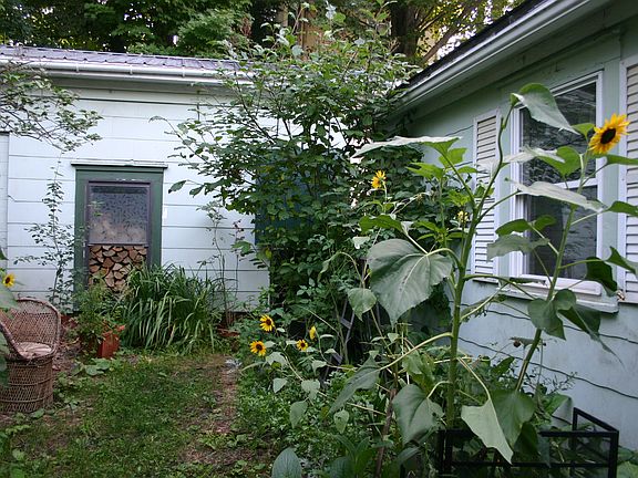 Newport City, 3 bdrm. 1.5 bath home, with gated drive & private fenced backyard. 3 season porch, breakfast nook off of kitchen. Detached 1 car garage. 3 blocks to Main Street & Lake Memphremagog waterfront walking path & City Pier, library, health food store, restaurants, groceries, post office, hardware store, pharmacy, banks, etc. 4 minutes to I-91, & Hospital. Legal wood stove hookup in place. First floor office. Lilacs, daffodils, peonies, hyacinths, rhubarb, day lilies, roses, herbs, producing blackberries & raspberries. Vegetable garden already planted. Quiet set up above the street surrounded by trees with a secret garden perfect for children, chickens, other pets, and rare herbs, enjoy a mini-country domain in the city.