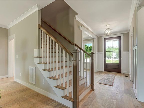 Don't miss this southern beauty built by Precept Construction in popular Providence Glen! You'll fall in love with the 4 sides brick veneer featuring custom cedar shutters & front porch columns. 3 BRs and 3.5 BAs. Welcome your guests through a Mahogany front door with beautiful Flemish glass. Spacious formal dining room leads to a wonderful family room with cozy fireplace. Chefs kitchen features sand color shaker cabinets w/beige butterfly granite, whirlpool stainless appliances and pantry. Hardwoods are featured throughout the main level & stairs. Retreat to the main level primary bedroom with faux wood beams and spa like bath with huge walk in closet and custom wood shelving. Upstairs you will find 2 spacious bedrooms, huge bonus with siting area, 2 full baths and large walk in attic storage (200 sq ft). Special features include structured wiring package! - Whole house network wiring for audio, video, data, telephone & home automation. Builder to aerate and reseed lawn in the fall.