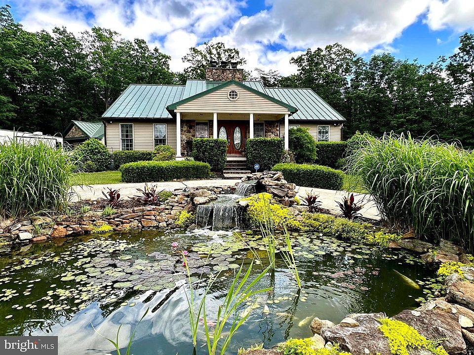 CUSTOM BUILT home, well maintained and situated on 8+ acres with gorgeous mountain VIEWS. UNRESTRICTED. No detail has been overlooked with this one! The huge DOUBLE SIDED STONE FIREPLACE is the standout of the home, rarely seen in a private residence. Enjoy the warmth of the wood fire from the living & dining areas. Vaulted ceilings with skylights add to the incredible character of this stately country home. Kitchen has stainless steel appliances & stone countertops. Gleaming hardwood floors throughout the kitchen, dining, living & owner's rooms. Oversized, main floor owner's suite with built-in cabinetry, bay windows, large jetted soaking tub, gas fireplace, walk-in closet & ensuite bathroom. Feel like royalty! 2 additional spacious bedrooms, a full bath & laundry room complete the main level. Down the steps you will find an easy walkout, lower level with tiled entry foyer/ mudroom, a wet bar with stone countertops, large family room with wood burning fireplace and storage closets. Lots of great extra features: SCREENED PORCH, whole house central vacuum, back up generator, inground sprinkler system, security system, extensive hardscaping & landscaping with street lamp lined driveway, KOI POND with water falls & iron entry gates with automatic remote opening. 2 car ATTACHED garage and a separate DETACHED oversized 2 car garage with very large loft/storage area upstairs. Paved and Circular Concrete Driveway. Don't over look the gardening area with raised beds and fencing. This property is an absolute must see,