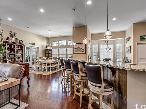 Gorgeous 5 bedroom, 3.5 bath home in the Rivers Edge Plantation gated community. Natural gas community. This home is great for entertaining. Gourmet kitchen with Granite countertops, kitchen island, stainless steel appliances. Hard wood floors, tray ceiling in master bedroom, walk in closet. Spacious bedrooms. A MUST SEE outdoor entertainment area. Plenty of upgrades -. Lorex 1080p security camera system with DVR. that allows remote viewing and intrusion detection alerts. Simply SAFE security system. Hot Tub, Patio bar with your own Kegerator, Outdoor fireplace, Garage pull down screen system for airflow on hot days. Gas fireplace with blower on cool days. Ecobee smart thermostats. Remotely cool or heat your home. Extended patio awning. Chef refrigerator with incorporated sparkling water system. Rivers Edge Plantation has a community pool, clubhouse, boat ramp and dock on the Waccamaw River. It is located close to all the finest dining on the Grand Strand, shopping, and attractions, and with only a short drive to the beach this is definitely worth scheduling a showing today.  Square footage is approximate and not guaranteed. Buyer responsible for verification.