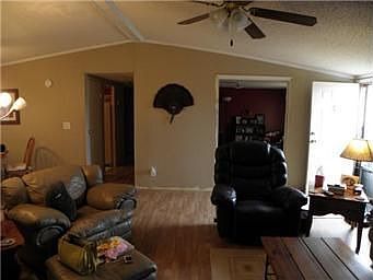 Just 100 yards off blacktop. 7 acres of trees, lots of wildlife. Manufactured home with 2x6 construction. Nice size rooms with laminate flooring. 3 bedrooms with large den or office. Most appliances will stay. Owners have updated most of the inside, with a few minor repairs left, but will be completed as weather permits. Nice home for the money