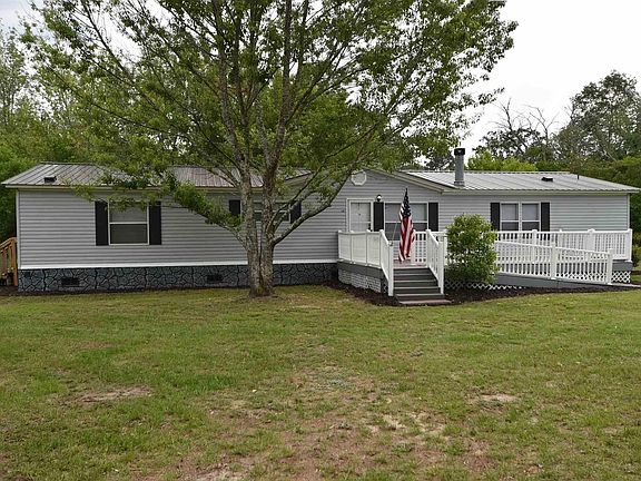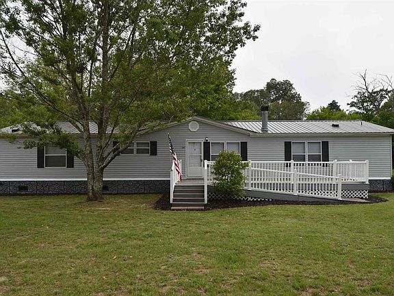 Completely Renovated! FHA Eligible. New metal Roof, New flooring and freshly painted. Open floor plan with dining area great room combo with fireplace. Large eat in kitchen with new cabinets and built-ins, Jennair downdraft island cook-top and new dishwasher. Over sized master bedroom with his and her bathrooms and an enormous walk in closet. 4 acres--fenced and gated with separate hook ups for an additional mobile. Detached Hoover Building with power. Large Trex deck on front. Perfect of entertaining. Plenty of room for family and friends.