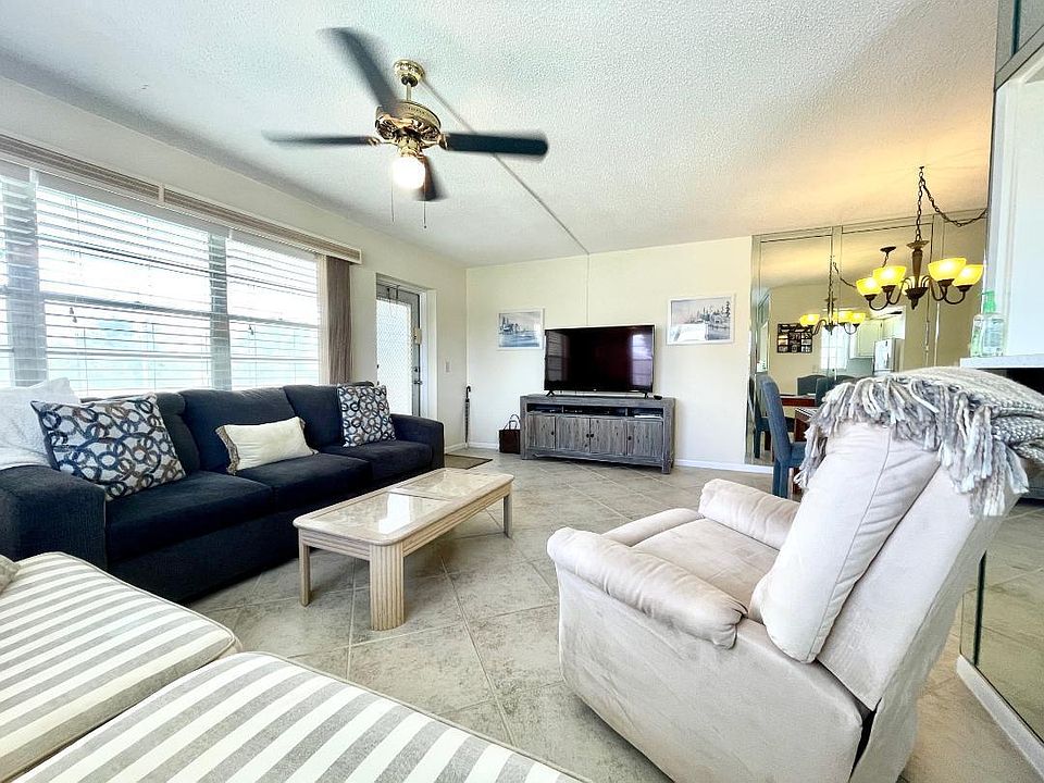 Bright & cheerful second floor CORNER 1/1.5 unit in a pet friendly building. Neutral tile floors, set on the diagonal, throughout the home. New AC. Lovely updated enclosed lanai with tile floors. Bedroom suite with full en-suite bath, wall of closets, and access to the lanai. Sold furnished. Building offers a nicely landscaped patio area for residents and is pet friendly (one small dog allowed - 15 lbs. or less). Sheffield H is tucked away yet close to the Hastings Fitness Center & Pool as well as the main Clubhouse. Century Village is a 55+ community with