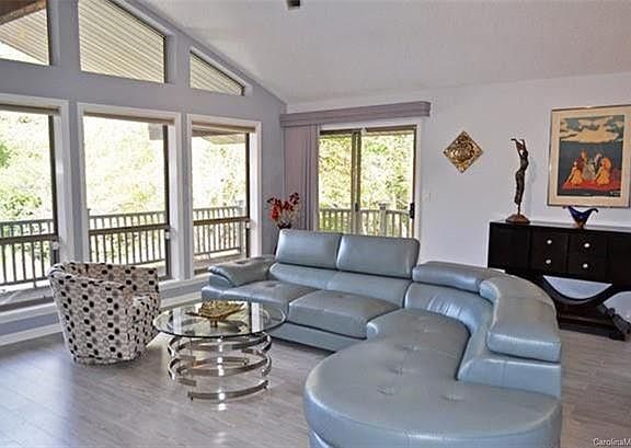 Nicely updated home with a large back yard with fencing. Spacious master suite offers a large walk-in tiled shower with glass doors, double vanity and walk-in closet. Great room features a wall of windows which provide a year-round mountain view and access to the large wrap-around deck, and includes a wood-burning fireplace with stone surround. Two additional bedrooms and a full guest bath are on the main level. The basement includes a two-car drive-under garage as well as a third full bath and two large rooms to meet whatever needs you have. The back yard features a recently added platform deck for additional outdoor living and entertaining, with low-maintenance landscaping. There is also a large additional garage and workshop for storing whatever you need. As part of Rumbling Bald Resort, members and guests enjoy access to all amenities including a lakefront beach, wellness center, tennis, golf, swimming and more! Some furnishings convey.