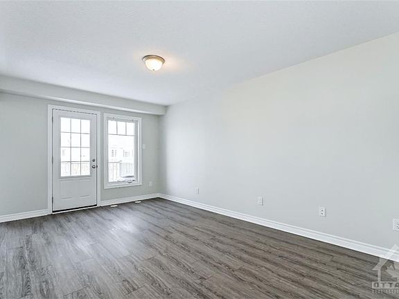 FULLY REFINISHED WITH NEW FLOORING AND PAINT THROUGHOUT! This three storey town home features an open concept living area that offers a formal dining area that would make a great home office or play area, a large eat-in kitchen with built-in microwave, dishwasher, breakfast bar and eating area and a spacious living room with access to the balcony. Offers three good sized bedrooms, the primary has a walk-in closet and 2 piece en-suite bath. Includes 6 appliances, parking for three cars with the attached garage and driveway for 2, on a quiet crescent just three doors down from the park with a soccer field, play structure, and splash pad. Utilities extra. Available Dec 1 Copyright Ottawa Real Estate Board (OREB). All rights reserved. Information is deemed reliable but not guaranteed.