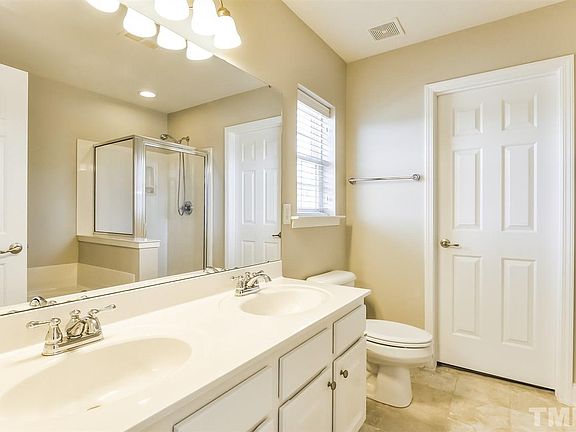This Raleigh two-story home offers a fireplace, master bathroom double sinks, master bathroom separate tub and shower, master bedroom walk in closet, granite kitchen counter, a loft and a two-car garage. Upgraded features include new carpet in select rooms, new flooring in select rooms and complete fresh interior paint.