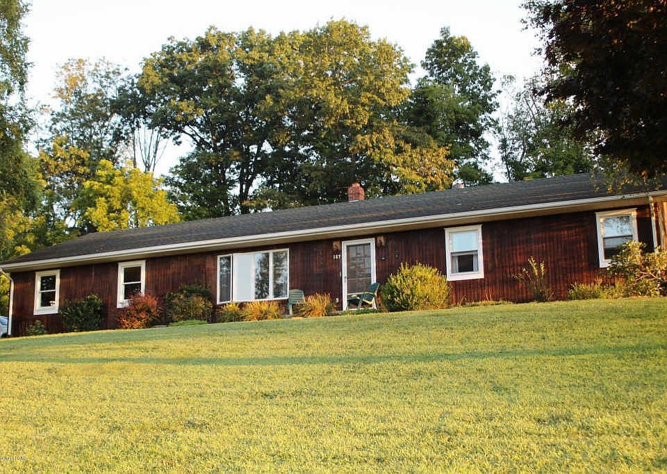 Unique property on 7 acres including barn with 2 horse stalls (plus electric & water), riding trail & pen, pasture, outdoor stone fireplace and patio. Completely updated ranch home featuring redwood siding, custom hickory kitchen cabinets, hickory, oak and ash floors, finished basement with stone veneer & poplar wood walls, attached oversized 2 car garage and much, much more.