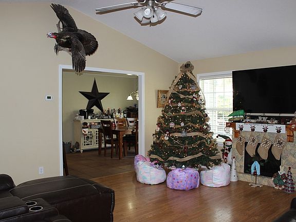 Nestled away down the long beautiful driveway thru towering pines is this lovely 4 bedroom 2 bath home on 10+ acres. Tile and hardwood throughout.. nice open kitchen and dining area.. large living room.. massive walk in pantry with shelving.. and oversized bedrooms. Outside is perfect for entertaining around the in-ground pool overlooking the well stocked 1 acre pond. There are 15 pens with gates for livestock and/or horses.. 6 permanent shelters.. 3 chicken houses.. 1 turkey house.. 1 dog house with run for two dogs.. a treehouse.. and a 30x30 pole barn. This property has so much to offer!