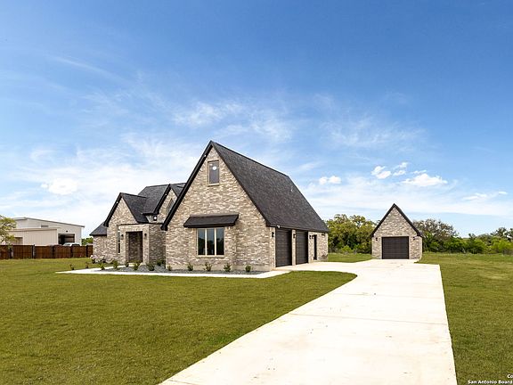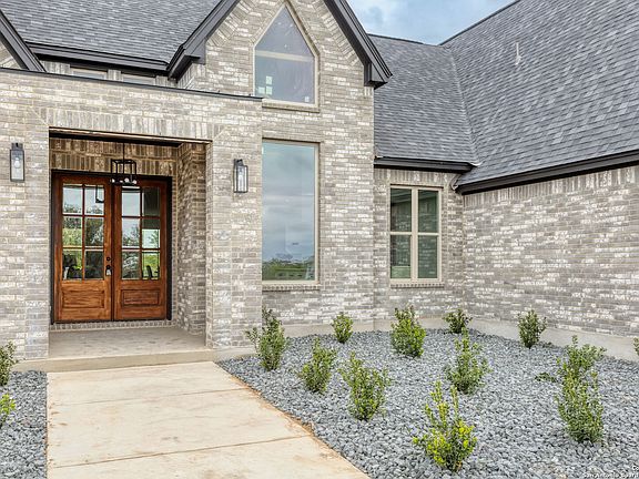 Stunning 4-bedroom, 3-bathroom home located on a spacious 1-acre lot in the quiet, gated community of Potranco Acres. This beautifully crafted residence features soaring 14-ft ceilings, 8-ft doors throughout, quartz countertops, a hidden pantry, and an open-concept layout designed for modern living. Custom upgrades include a striking fireplace wall in the living area, built-in office cabinetry, and an accent wall in the primary suite, which also boasts two walk-in closets and a spa-like ensuite bath. A seco