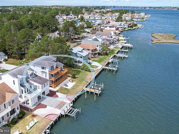 Fabulous St. Martin Riverfront Contemporary with Views out to the Bay and the Ocean City Skyline beyond. This waterfront retreat in the highly sought after Teal Bay area of Ocean Pines boasts over 3,000 square feet of casual, open finished living space. Built in 1996, 187 Teal Circle features 4 bedrooms, 4 full bathrooms on 3 levels plus 3 waterside decks and a 25' pier with 10,000 lb. boat lift! The lower walk-out level is home to waterfront bedroom #1 with double closets, ceramic tile, ceiling fan, and sliders to the River-facing deck (and outdoor shower). This bedroom shares a full hall-way bathroom. A laundry room with washer/dryer, utility sink, cabinets, and plenty of counter space is also on this level. Access to the 19' x 32' garage (which could accommodate 3+ vehicles and/or boat) with plenty of storage space, extra refrigerator/freezer, ceiling fan, and garage door opener is accessible off of the foyer. Walk up to the main level with its walls of windows and amazing water views and you'll find the spacious great room, country kitchen, dining area, and bedroom #2 with attached full bathroom. This level offers ceramic tile and carpeted flooring, vaulted ceiling in the great room, ceiling fans, bay window, as well as two sets of sliders to the deck. The country-kitchen is at the heart of this home with corian counters, breakfast bar, stainless steel appliances, double sink with an additional prep sink, and laundry chute. The 3rd and 4th bedrooms can be found on the upper level...both river facing. The primary bedroom with attached bathroom is carpeted with walk-in closet and sliders to the 3rd floor deck. The 4th bedroom with attached bathroom is also carpeted and offers breathtaking views of the waterfront. Soak in the the sunshine and prepare for a day of boating, crabbing, and fishing from the perpendicular pier with 2 slips and boat lift. A 13' x 20' concrete pad was added for lounging/sunbathing waterside. The bulk-heading is maintained by Ocean Pines. And, the side county easement between homes provides open green space. Additional features include programmable/remote thermostat, Leaf guard installed in 2020, new HVAC unit for main and lower levels in 2021, and the dishwasher, microwave, oven, and refrigerator were replaced in 2016. Ocean Pines is amenity-rich with parks, clubs, fitness and sports activities, walking/biking paths, farmers' & artisan markets, Clubhouse Bar & Grill (with live music), Yacht Club & Marina (with live music), kayak/canoe launch, and more! Amenity Memberships can be purchased for golf, pools, tennis, platform tennis, pickle-ball, dog park, marina slips, and Beach Club with prime parking located between 49th and 50th Streets in Ocean City. Experience the BEST of COASTAL LIVING at 187 Teal Circle!