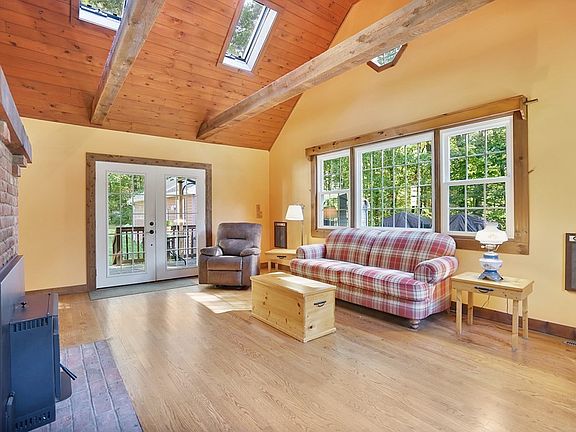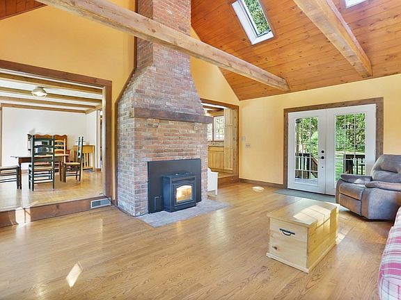 • Features: Wood / Coal / Pellet Stove, Skylight, Cathedral Ceiling(s), Ceiling Fan(s), Beamed Ceilings, Flooring - Hardwood, Window(s) - Picture, Deck - Exterior, Exterior Access, Open Floorplan