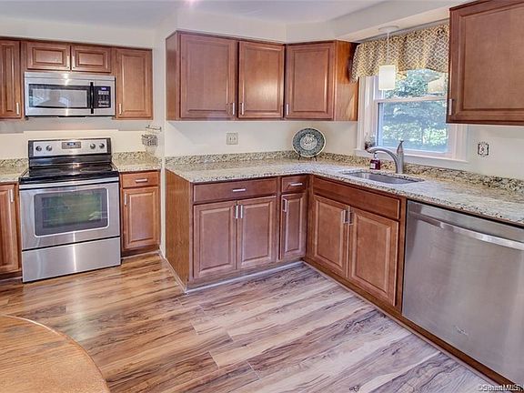 Desirable area of Hamden. This brilliant home features a remodeled eat in kitchen with granite countertops and stainless steel appliances. Hardwood floors throughout the first floor and charming brick fireplace to enjoy during those chilly fall evenings. Generously sized bedrooms and additional finished space in the basement for gaming or office area. Spacious and private back yard that is ideal for entertaining. New windows are just a couple of the things that make this home move in ready. Come see for yourself! Conveniently located minutes away from North Haven, highways and shopping.