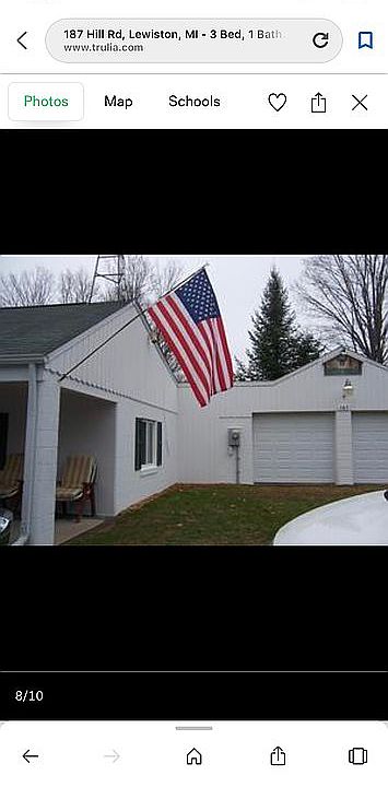 Land contract terms, available, 187 W Hill Rd, Lewiston, MI 49756 Home on 40 acre borders state land on 3 side, 2 bedroom plus a bonus room (being use as bedroom now). 1 bath, laundry, kitchen, dinning room, living room (with brick fire place),Large enclosed front porch, breezeway and 2 car garage, Would make a wonderful year around home, or top of the line hunting cabin. This is a one of a kind 40 acres rolling, with beautiful hardwoods. Bring your ATV's, snowmobile, horseback ride or hunt what ever it is you do enjoy it,s all here State Land on 3 sides. All new appliances, including washer and dryer new 50 gallon water heater new furniture new bedroom set all included in the sale, also includes mineral rights. Possibly negotiable. Please do not approach the property it’s currently being short term rental with Airbnb. Buy now start making memories with your family & friends. Please do not approach the property is currently being short term rental Airbnb.thank you and have a blessed day. Land Contract Terms Available.