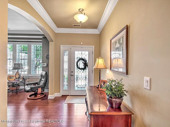 EQUESTRA! This Abbington Loft model has it ALL! Backs to Woods~3 Bedrooms~ 3 car garage (2 are tandem, great for the hobbyist, Vintage Car, toys, etc.) Wonderful open floor plan. 3 Season room~ sunny paver patio~ 9ft ceilings~ Recessed lighting, ceiling fans. Gas FP in family room. Master suite w/ 2 walk-in closets, full bath, tray ceiling, crown molding Bonus 2nd floor Bedroom ~ flex room with walk in attic for additional storage. PLANTATION SHUTTERS THROUGHOUT Ideal kitchen layout with granite counters, walk-in pantry. Beautifully Landscaped with lots of privacy WHOLE HOUSE natural gas generator Stop dreaming and live the reality at Equestra's gated community~18,000 sq ft clubhouse, indoor/ outdoor saltwater pools, gym, tennis/pickle ball courts and beautiful lantern lit walking trails Just minutes to the GSP and NJ beaches