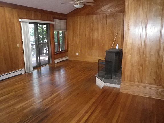 There are breath taking views from every window and deck of this contemporary house. This house has it all. There are 3 bedrooms and 2 baths, one is ensuite with the master bedroom, enjoy the luxury of a two car attached garage. It has a sunken living room with a wood burning stove. There are plenty of closets and storage in the unfinished walk-out basement. The house has hardwoods throughout with tile in the kitchen and baths. There is oil heat, washer dryer hookups and a fully appliance kitchen. The owner has also installed a generator for emergencies. No pets or smokers please.
