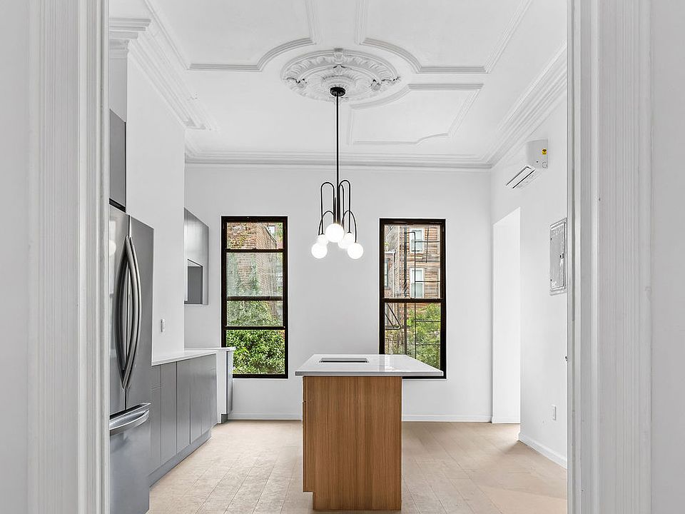 Newly renovated three-bedroom, two-and-a-half-bath triplex residence offers over 2,000 sq. ft. of interior living space, complemented by a private deck and an impressive 1,000+ sq. ft. landscaped backyard gardenperfect for entertaining, outdoor dining, and gardening. Available for Nov 1st Move-in. The parlor floor welcomes you with a stunning open-concept living and dining area featuring 10-foot-plus ceilings, elegant finishes, and abundant natural light. The space flows seamlessly into a large chef's kitchen equipped with stainless steel appliances, a standalone island, ample pantry storage, and an adjacent half bath. A private deck extends from the kitchen, offering a seamless indoor-outdoor living experience. On the garden level, you'll find three generously sized bedrooms and two full bathrooms. The primary suite overlooks the serene backyard and features an en-suite bath with double vanities, a luxurious rain shower, and a deep soaking tub. The fully finished cellar provides versatile additional space ideal for a home gym, playroom, media lounge, or extra storage. The home features split-system heating and cooling, allowing residents to control temperatures individually in each room via remote control. Perfectly situated in the heart of Clinton Hill, the home is just minutes from the Clinton-Washington G train and steps from Myrtle Avenue, offering a wide variety of restaurants, cafes, and local shops. Apartment Highlights: Private 1,000+ sq. ft. backyard garden Expansive 2,000+ sq. ft. triplex layout Fully equipped chef's kitchen with island Split heating and cooling with room-by-room control In-unit washer/dryer Private entrance foyer beneath the stoop Wide-plank engineered oak flooring throughout Modern Spaces is the exclusive representative of the landlord. Rental Fees $20- Application fee per applicant/guarantor $6.06 -Processing Fee At lease signing - 1st Month rent and 1month security deposit