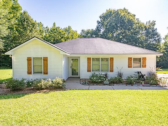 Welcome to your own private oasis! Nestled on just over an acre and surrounded by peaceful woods, this adorable 1-story home offers the perfect blend of country living and modern comfort—plus a creek at the back of the property for added charm. This 3-bedroom, 2-bath home features a desirable split bedroom plan, offering privacy for the primary suite. Enjoy beautiful LVP flooring throughout the common areas and the primary bedroom, giving the home a stylish and durable finish. The cozy living room boasts a wood-burning fireplace, creating a warm and inviting space. The kitchen is well-equipped with stainless steel appliances, ample cabinet space, and room for a breakfast area. A flex room just off the living space offers endless possibilities—home office, 4th bedroom, playroom, or second living area. The laundry room, located off the kitchen, has its own exterior access for added convenience. The spacious primary suite is a true retreat with a rustic barn door leading to the walk-in closet and an en-suite bath featuring a double vanity, soaking tub, and separate tiled shower. On the opposite side of the home, you'll find two additional bedrooms and a full bath—perfect for kids or guests. Enjoy the outdoors with plenty of usable yard space, a charming chicken coop (which stays with the sale!), and a large outbuilding for storage or hobbies. The surrounding woods offer privacy and a serene, natural setting. Located in a peaceful country setting but still close to shopping, dining, and highly rated schools—this home truly offers the best of both worlds! Don't miss your chance to live the simple life in style!
