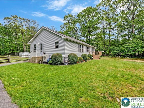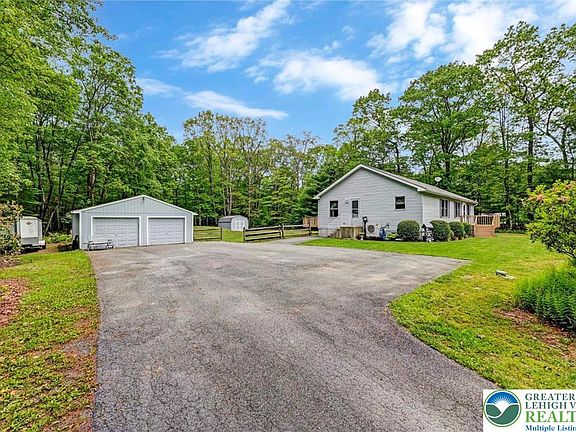 Pocono Ranch Home Set Back Amongst 4.75 Acres Of Peaceful Countryside! Offering 3 Bedrooms, 2 Full Baths, Detached 2 Car Garage & Full Unfinished Basement. Spotless Well-Maintained Home Has Spacious Kitchen w/ Abundant Cabinetry, Pantry, Mobile Island & Breakfast Nook w/ Bar-Top Seating. Open Concept Living Room & Formal Dining Room w/ Sliding Glass Doors To Expansive Deck Overlooking Private Backyard. No HOA Fees And Total Taxes Are Less Than $5,000/Year. Lot Adjoins Over 20 Acres Of Forested Land Owned By Pocono Mountain Elementary School. Recently Painted Front & Rear Decking Plus Newer Roof On House, Garage & Shed. Full Unfinished Basement w/ Propane Heater, Laundry Area & Whole House Water Filtration System. Large Detached Garage/Workshop Is Nearly 600 SqFt & Has Separate Electrical Panel & Plenty Of Room For Your Workshop. Multiple Heat Sources Including Newer Split System w/ Heat Pump That Also Provides Central Air Plus 2 Propane Heaters. Horses & Farm Animals Are Welcome. Country Living At It's Very Best!