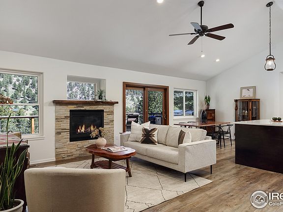 BIG PRICE ADJUSTMENT! This is what happens when a classic mountain home gets a modern makeover. Just under $250,000 has been thoughtfully invested in remodeling and improvements, elevating both form and function. Vaulted ceilings, fresh contemporary white walls, and a quartz island big enough to double as a dinner party stage anchor the open main level, which pours seamlessly onto a large deck-equal parts everyday comfort and effortless hosting. The fully renovated kitchen delivers clean lines, smart storage, and room to seat five without crowding the cook.The primary suite is a calm, elevated space with private deck access-your own quiet corner for morning coffee or an end-of-day reset. Sleek finishes and a spa-like feel make the ensuite bath a true retreat. A guest room and a dedicated office with glass French doors round out the main level. The walkout lower level expands the living space with another guest retreat, a generous rec or family room, and a large covered deck built for impromptu hangs or all-out entertaining. An attached 3-car garage has room for bikes, an ATV, or whatever else fuels your mountain life.Exterior is been freshly painted. Decks have been reinforced or replaced. Most windows are now triple-pane with a lifetime transferable warranty. There's even a fully automatic whole-house generator. This home offers more lifestyle and less worry, thanks to every smart update and detail.Walk to a private community swimming hole on the Little Thompson River. Hike straight into the surrounding national forest. Grab pie from Colorado Cherry Co. just down the road, or hop in the car-Rocky Mountain National Park is just 30 minutes away. Downtown Lyons, with its live music and local shops, is only ten minutes away. Photos don't quite capture it. You'll want to see the setting, and the flow in person. You might even meet a few neighborhood deer-or elk-while you're here. This one's worth experiencing. Schedule your private showing today.
