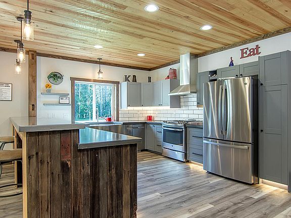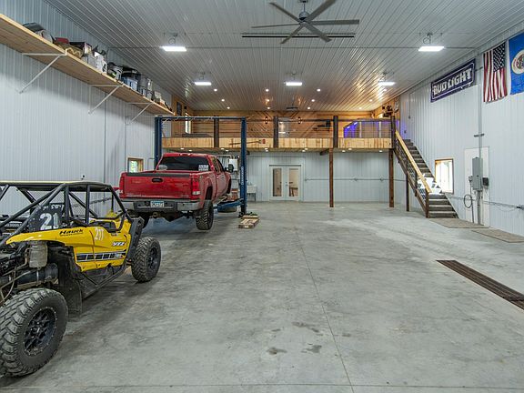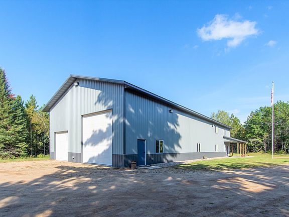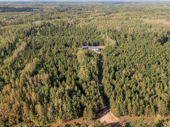 Private Shouse (shed + house) on 20+ acres adjoining state land just north of Pine River. 96x40 foundation, fully spray foamed with 2 in-floor heat zones. 40x60 garage/shop includes car hoist. One level living on the main floor plus upper level which includes a huge family room/loft area w/bar, 2 bedrooms, bonus room & full bath. State land to the west and south with trails running throughout the property. Unique property with rough cut pine T&G, stamped concrete porch, concrete counters, LED lighting and more!