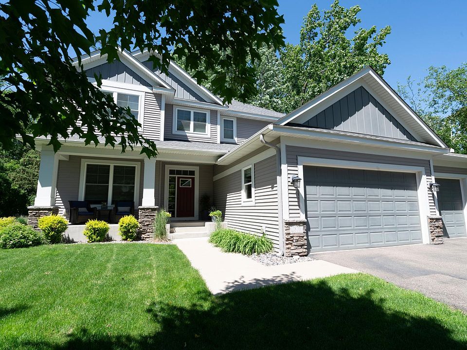 Beautiful two story with stunning private backyard. Open concept with great visuals between kitchen and entire main floor. Handy pantry, well planned mud room and surprising two home office spaces. Four bedrooms up with convenient laundry and attractive primary and ensuite spa level bathroom. Finished basement adds a guest bedroom, full bath, large family room and a crazy amount of space for storage. Easy access to wooded backyard with stamped concrete patio, mature trees and pond. Beautiful yard has inground sprinklers and Leafguard gutters for easy maintenance. Oversized 3 car garage with space for workbench and overhead storage. Quiet neighborhood in award winning Mounds View School District. This one shines....you will not be disappointed. Neutral decor, quality trim package and well maintained.