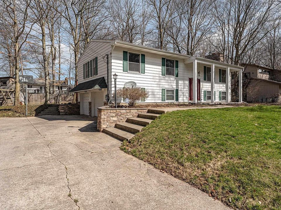 Welcome to the highly desired neighborhood of Bamber Woods! This 4-bedroom, 3-bathroom home sits on almost a ½ acre, on a beautiful corner lot. Home features a private primary suite with direct access to the backyard, an upgraded kitchen with island, granite counter tops, and stainless-steel appliances. The floor plan includes an open concept main level with kitchen, living room, dining room, bonus room facing the backyard, two full bathrooms, and three bedrooms. The lower level has the fourth bedroom with built ins and walk in closet, family room with gas fireplace, full bathroom, spacious laundry room with sink, and storage room. Outside you will not be disappointed with plenty of shade trees, an elevated back deck, ground level patio, and a covered front porch. Schedule your tour today to discover why this home in Bamber Woods might be what you have been looking for!