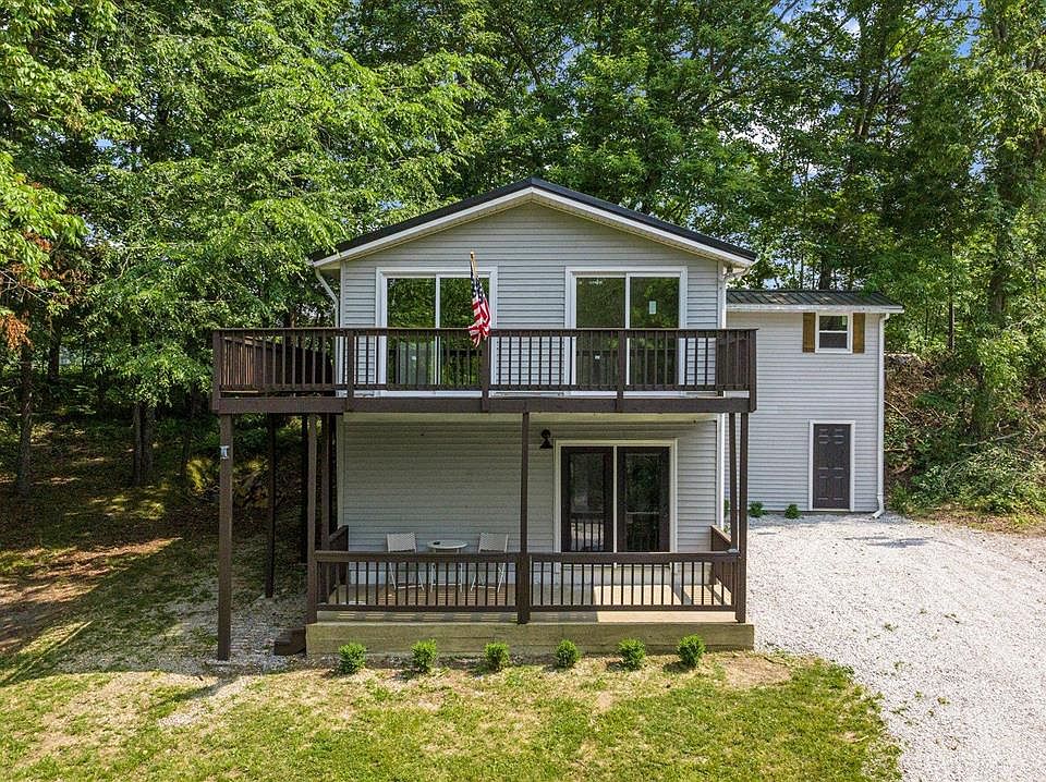 Nestled on 2 lots within vintage "Brier Creek Village" and only 2 minutes from Nolin Lake State Park and public boat ramp, this adorable lake cottage has been recently updated, and is ready for new owners to move on in, and start enjoying all the summer lake amenities. Featuring two "living areas," newly installed kitchen cabinets with granite and tiled back splash, in addition to water proofed flooring throughout with fresh paint, and a ton of modern fixtures and finishes, you need to view to truly appreciate. Outside hosts a covered front porch, and second story wrap around deck, where you can relax and enjoy Mother Nature. Unrestricted, with potential as a short term rental, properties like this are hard to come by. Contact listing agent for your private tour today.