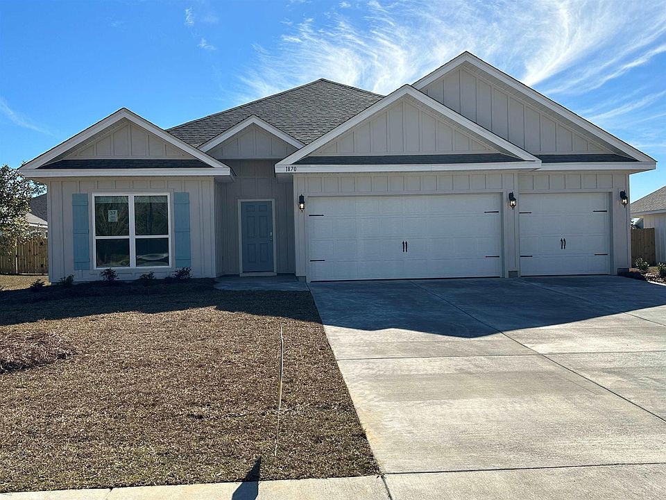 *** MOVE IN READY *** $10,000 Buyers allowance, $3500 towards buyers' closing costs and as low as 4.99% interest rate with preferred lender. Mus close by 3/31/2023. PEACHTREE is our newest community in northeast Foley and is tucked away off E. Peachtree St. This area is known for peace and tranquility away from the hustle and bustle, yet only minutes from S. Baldwin Reg. Medical Ctr., shopping, dining and entertainment. And of course, just a short drive to the beautiful beaches of Gulf Shores and Orange Beach. The Foley Beach Express is also a convenient option to get to anywhere you want to go in south Baldwin County! These highly sought-after homes have 3-car garages and open floor plans. The single story, 4br/3ba split bedroom DESTIN plan includes 9 ft. ceiling heights, with 10 ft. trey ceilings in the living room and primary bedroom. It will also include a beautiful tile shower in the primary bath. The kitchen and baths will have granite and beautiful white painted cabinets. Stainless steel appliances, a huge island overlooking the living room, and a large walk-in pantry will delight anyone who loves to cook and entertain. Mohawk Enhanced vinyl 7.5-inch plank flooring throughout excluding the bedrooms/closets. Your 3-car garage comes with remote openers. Hurricane fabric shields are included for every window and door in this GOLD FORTIFIED home! The entire yard will be sodded with a generous landscaping package in front. The DESTIN plan has a very large covered back porch to enjoy coffee in the morning or cocktails at sunset! *This home is built to Gold FORTIFIED HomeTM Certification, which may save the buyer on their homeowner's insurance. The home will also include a Home is Connected (SM) Smart Home Package.