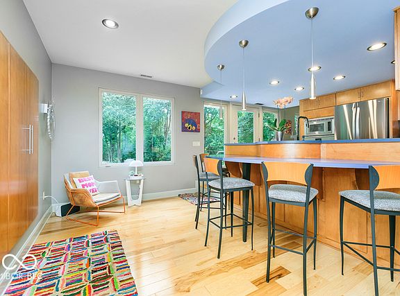 Singularly built for the original owner, there is no more unique home in east Carmel than this! Settled pristinely on more than a half an acre, enjoy the hot tub surrounded by Summer cicadas and Winter flurries. This home has been supremely maintained in it's original contemporary style whether it's in the custom hand made hardwood maple kitchen cabinets, the hidden Great Room, the artists loft that could be an office, reading room, exercise space or many other things. Inhale the intoxicating view of the rear yard with deer, fox and hundreds of species of wild life & sumptuous plantings. Need storage? No problem...there's a 5 foot high cement paved crawl with over 500 SF