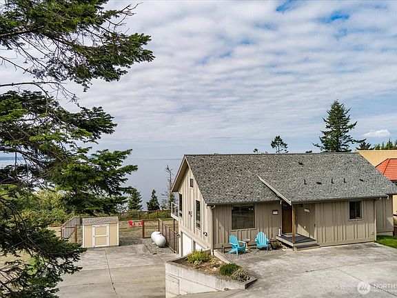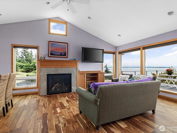 This exceptionally designed custom home offers miraculous unobstructed views of the Salish Sea, Admiralty Inlet, Port Townsend, & the majestic Olympic Mountains. Centrally located between Coupeville & Freeland, it's perfect for full-time living, or weekend escapes. With soaring ceilings & abundant light filled spaces throughout, this home features main floor living with a kitchen-centric great room, cozy fireplace insert, a spacious primary suite, half-bath, and laundry room. In addition, a 2nd bedroom, full bath and additional living space in the daylight basement. Built in 2014 with a meticulous attention to detail including an efficient Solar PV system, full house radiant in floor heating, & an oversized garage. Welcome Home to Whidbey.