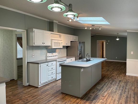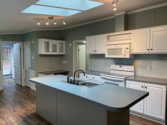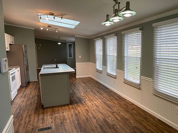 COMING SOON! Spacious, beautifully updated three bedroom, two bath modular home in a country setting. This home sits back off the the road with plenty of shade trees. Inside the home features fresh paint in the common areas, vinyl plank flooring in the living areas, carpet in the bedrooms, a vaulted ceiling great room with gas fireplace, kitchen with a large island, stainless steel refrigerator, tile backsplash and skylights. The home has a split floor plan, cozy breakfast area, office nook, and large laundry/mud room. Outside features a covered back deck and large workshop/garage. Second garage building does NOT convey and will be the owner's storage. Lawn care and water are INCLUDED with rent!! No pets, please.