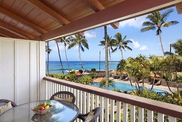 CORNER UNIT - STUNNING COASTAL VIEWS Its picturesque seascape view, proximity to the coastline, multiple lanai, and vaulted living spaces bring the outdoors in at Nihi Kai Villas 203. The sound of the ocean tempts and the beach is a short stroll away. Updated with new flooring and furnishings, this corner beach view unit has a beautifully remodeled kitchen with spacious pantry. Living and dining areas open to covered outdoor lanai venues providing additional family, entertaining, and eating spaces with idyllic Kauai ocean views. The lower levels spacious two-bedroom suites include private lanai spaces and bathrooms, of which the master has been recently updated.Nihi Kai Villas seaside gardens, pools, and tennis courts are a short walk from Poipu Beach Park and just minutes from its popular visitor destination area, featuring Kauais favorite shopping, dining, golf, activities, and entertainment. Unit 203, with its spacious corner unit location and 1,472 square foot interior, places you comfortably right in the middle of it all!Ocean & seaside pool viewsUpdated kitchen & master bathMultiple lanai spacesMinutes from beaches, shopping & diningClub pools, tennis & bbq areasVacation rental permissible