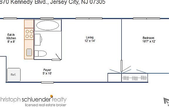 NO BROKER FEE: Gut renovated 1-Bedroom on Kennedy Blvd. with easy access to Journal Square PATH. Have you seen enough crummy apartments in Jersey City asking for even higher rent? Are you looking for a quick and easy commute to New York and Manhattan? This privately owned condominium unit has just been gut renovated. Be the first to enjoy modern eat-in kitchen with new appliances (refrigerator and microwave included). Modern tiling in foyer, kitchen and bathroom. All new bathroom with modern, sleek white wall tiles. Living room and bedroom with refinished hardwood flooring. Gas & electric are not included in monthly rent; you pay for heat & hot water. Apartment is in a 26-unit pre-war building that is well maintained. Bus stop just outside building. Easy commute via bus to Journal Square PATH terminal. See link for door-to-door commute via public transportation to Midtown Manhattan: http://goo.gl/maps/Yh57S Laundry (coin operated) in basement, street parking. Credit check and proof of income required. Security deposit 1 month rent. NO BROKER FEE! Available for immediate move-in. Call or email me today to setup a viewing. Christoph Schluender Realty, 201-233-1556, broker@schluender.us