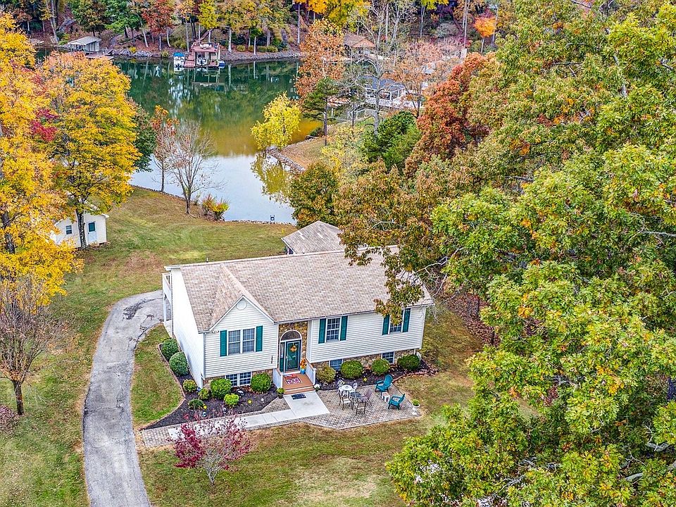 Location, Location, Location, near Westlake conveniences and on one of the best fishing and skiing long tributaries off the Main lake, Betty's Creek, near Marinas, Restaurants and shopping. This beautifully maintained 3 BR, 3 FB home is neat, clean and well-built with no HOA, and sits on a large 3 acre lot. Lower level 4th BR possible and a 2nd Kitchen as well.. perfect for teenager, mom, or guests. Plenty of room to do whatever you like and includes a large detached 16x24 shop for woodworking or hobbies. Covered screened in porch and full-length deck overlooking the lake. Enjoy a gentle walk to the dock with plenty of room to add a lakeside patio or Cabana. Property lines extend from the lake all the way to Merriman Rd.