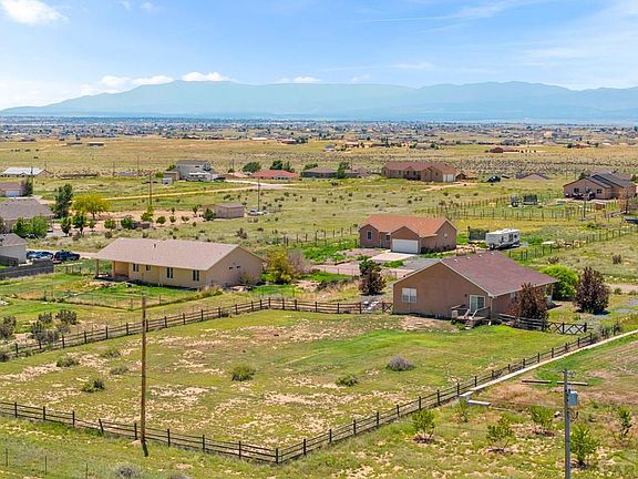 15K Price Reduction! Don't miss out on this beautiful Pueblo West (North) ranch style home located on a quiet cul-de-sac just off a paved road with convenient access to I-25 for an easy commute to Fort Carson & Colorado Springs. This 4BED 2BATH home has been well maintained and features many NEW updates throughout. Includes a 3 car garage & a full unfinished basement for future expansion. Features include gorgeous wood laminate flooring in living room, dining room and 4th bedroom that makes a great home office. Kitchen features tile floors, lots of cabinetry, pantry, bar seating and includes all updated stainless appliances. Spacious primary bedroom suite has a nice walk-in closet and 5pc bath that includes a jetted tub. Main level laundry room. Tile floors in both bathrooms & laundry room. Recent updates include NEW light fixtures, NEW plumbing fixtures, NEW ceiling fans added in all bedrooms, NEW carpet in bedrooms and stairway & NEWLY painted interior. Basement has stub-outs to add a 3rd bathroom. Central Air. Sits on a 1.02 acre lot. Fully fenced backyard with split rail fencing. Open deck in rear. Great views of Pikes Peak from the covered front porch. High-speed internet available in this area. This wonderful and affordable home shows extremely well. Hurry and schedule your showing today. You won't be disappointed!