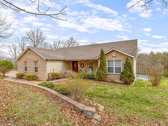 Beautiful brick-front home on 5 acres with an attached garage and a spacious detached garage. Step inside to an open floor plan featuring hardwood floors throughout the living room, dining area, and kitchen. The kitchen boasts elegant cabinetry with crown molding, granite countertops, a movable island, and energy-efficient appliances. The primary suite offers sound-insulated walls for added privacy, dual walk-in closets, and a luxurious bath with double sinks, an oversized custom shower, and adult-height vanities. Two 50-gallon zoned water heaters ensure efficiency. The lower level includes a 24x30 family room with a fireplace, wet bar, storage, and potential additional sleeping space. Outdoor highlights include a 20-yard shooting range, a lighted golf tee box with a 120-yard target area, a wet-weather creek, a custom fire pit, and a 24' above-ground pool with a cedar deck. This home is a rare find—schedule your showing today!