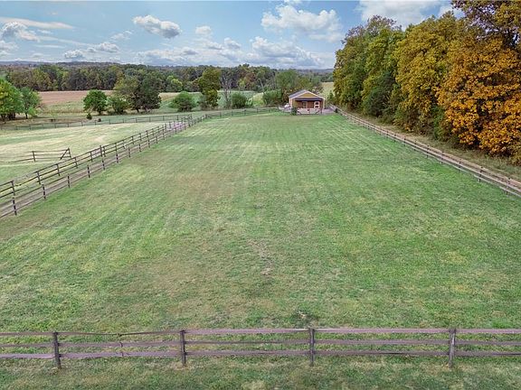 Upscale country living on private estate. Updated kitchen w/ custom oak cabinets, granite counter tops, SS appliances, tile floors, granite sink & stone tile backsplashes w/ pewter inlays. 4-seat breakfast bar, convection oven, InSinkErator. Kitchen opens to spacious DR w/ large windows, vaulted ceiling w/ exposed open beam & hdwd floors. Rear windows in kitchen - master BR are all tinted. Stone gas FP flanked by large windows. Vaulted ceiling w/ exposed beam & hardwood floors. Sumptuous master suite has a stylish vaulted ceiling, WIC & romantic master bath w/ Jacuzzi tub. Library w/ built-in bookcases. Large tiled laundry rm w/ sink & WIC. 4+ ft high ceilings in basement/crawlspace, concrete floor & walls w/ exterior access. 2 car garage has heat & A/C + powder room. 1000' recently remodeled in-Law Suite w/ A/C, 2 BR & 1 bath. Olympic size (25 x 50) lap pool & separate heated hot-tub. Pool house & pond in rear. 3 large pastures & round pen. Barn w/ rubber mats & 2 airy stalls w/ dutch doors that open to paddock. Finished tack/feed room w/ shelving & built-in exhaust fan, sink & hot water. Improvements made over last few yrs: entire house exterior repainted, all gutters & downspouts replaced, refaced kitchen cabinets, automatic shades installed on 3 windows in DR, top portion of deck leading to in-law suite replaced w/ Trex, pavers around pool redone. Can have up to 12 horses (buyer needs to verify w/ zoning).