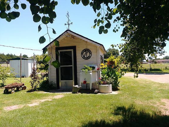 Beautiful country home on 5 acres. 3 acres are fenced with 8 ft fence. 2 baths, screened porch and big utility room have been added on. Has new roof, new windows and storm cellar. In the garden area there is a greenhouse and garden tool shed. Pretty new chicken house and 3 separate runs. There is a big equipment barn, workshop and lawnmower shed. A portion of back yard is chain linked fence for pets or small children. A huge carport that can cover a boat, travel trailer or 4 vehicles. Natural gas for heating and cooking. Excellent roads on 2 sides.