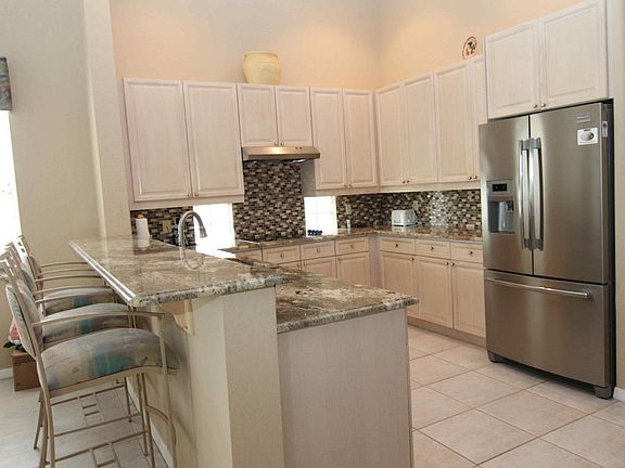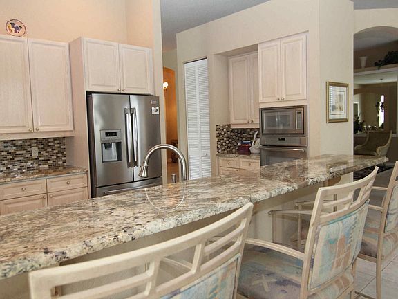 Incredibly spacious contemporary pool home. Almost 3000 sq ft of living space set on a private, interior lot with corner lakeview. Updated w/many attractive features including a beautiful kitchen. You'll love the warm raised panel wood cabinets, upscale granite counter tops, deep Euro double basin sink, glass mosaic back splash & stainless steel appliances incl double convection/microwave oven. Note the tasteful decor, volume ceilings, solid core doors, arched & transom windows, attractive ''stone-look'' tile floors. Roomy master suite has two fitted walk-in closets, new tile floors, walls & glass shower enclosure in bath. Guest bath also updated with new floor tile & tub surround. 4th Bedroom set up as an office. Please click