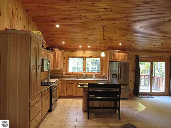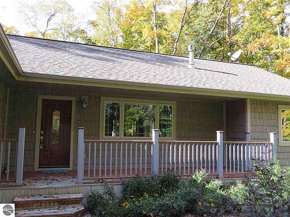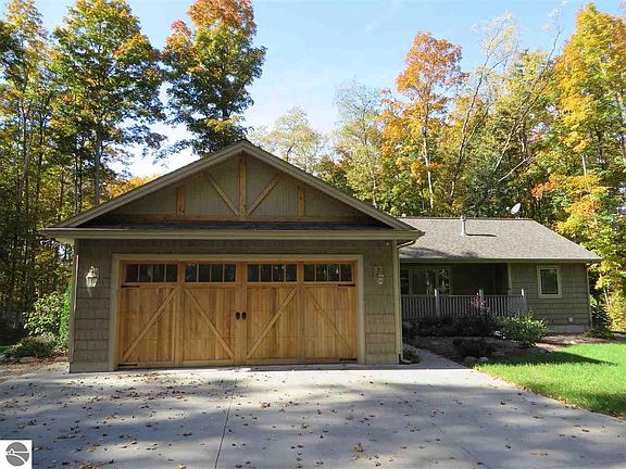 High quality Ranch home on 6.91 acres of private acreage in the heart of Benzie County. The house features an open floor plan with quality wood interior through out the main level. Other features include a covered front porch, rear deck, gas fireplace, cathedral ceiling and finished lower level. A custom kitchen offers high end stainless appliances framed with ash wood cabinetry. The exterior is detailed with shake shingle vinyl siding and a custom ornate wood garage door. A beautiful landscaped yard plus hardwood grounds adds to the quality setting. Extras include a 28' x 46' pole building for storage and a second base storage building. Great location near the Pere Marquette State Forest and close to Sleeping Bear National Lakeshore and Lake Michigan.