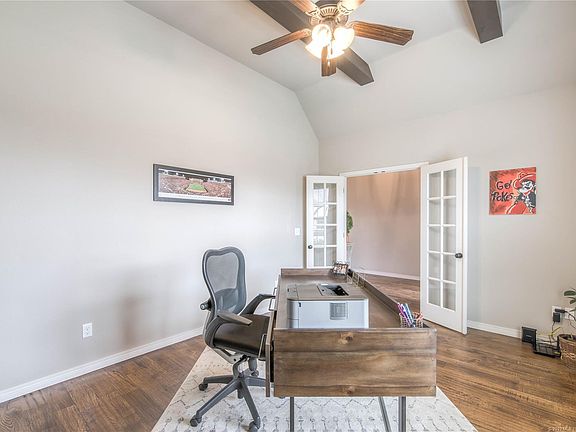 One-level home with curb appeal! Warm and inviting interior. High ceilings, gorgeous wood floors, beam accent ceiling in office & living rm. Floor-to-ceiling stacked stone fireplace. Open floor plan is great for entertaining! Incredible kitchen, granite countertops, island, pantry, tile backsplash, ample cabinet space & SS appliances. The master suite is lovely and the en suite is even better! Dual sinks, large walk-in tiled shower, garden tub & master closet w/ built-ins. Great backyard w/ covered patio.