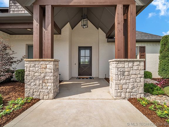 This is the one!! This stunning home has it all and is located in the picturesque Stone Canyon community offering an enhanced quality of life. With a community pool/pool house, trails system, stocked lake and annual events surrounding these amenities a healthy lifestyle and sense of community is not only encouraged but is made fun for everyone! Only minutes to Tulsa this location is unbeatable with easy access to anything you could ever need. Discover luxury right at home on this gorgeous one acre lot, meticulously planned for privacy as beautiful landscaping surrounds the designer saltwater pool/hot tub combination with custom lighting and waterfall features. An outdoor kitchen under the large covered patio adds to the entertainers dream come true! This home offers a perfectly laid out floor plan of 5 bedrooms, each having a private bathroom, a separate half bath for guests, a game room upstairs open to the first level and views to the amazing backyard oasis from the Kitchen/living room and the back of the home. The large primary bedroom features a huge walk-in closet, a breathtaking bath with double sink vanities, a lighted designer built in dressing vanity and a multi-head, beautifully tiled shower. The kitchen is ready for the one that loves to cook! Complete with majestic cabinetry to the ceiling that provides all the storage you could ever want, Bosch appliances including a convection oven, an Electrolux Column Refrigerator/Freezer, hammered farm sink in the oversized island, quartz counters, soft-closed cabinets, and a huge walk through pantry. An oversized dining area and living room featuring beautiful lighted built-ins, a gorgeous floor to ceiling stone fireplace and hand scraped hard woods to complete this extraordinary space. Upon entering you quickly feel the warmth of the home with a barn door opening to the home office then your eyes are immediately drawn to the soaring ceilings through the living room to the amazingly peaceful backyard.