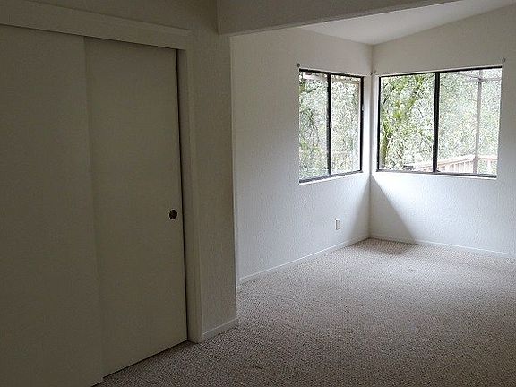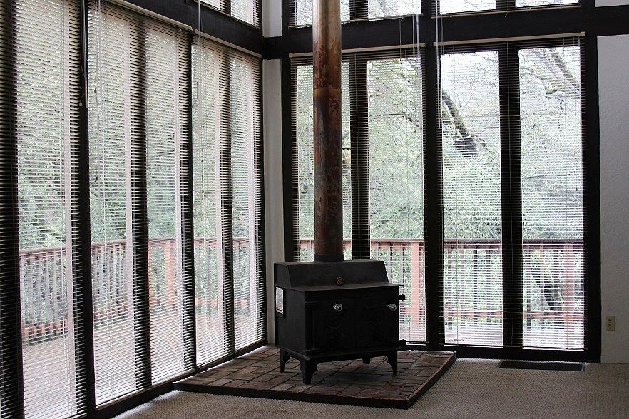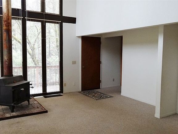 3-story house in the trees, on 2 adjacent parcels: 4.33 & 4.44 acres. Dramatic two-story windows look into forest. Heavily treed, with dramatic rocks, in earshot of seasonal creek. Moss-covered rock outcroppings are stunning. 2 miles from Purdons Crossing. Two-level main house. Exterior entry for Lower level , currently a non-conforming rental. Interior stairs also. 3 bedrooms, 2 baths , main part of house. 2 bedrooms, 1 bath, lower level. Lower level once a leather studio. Open floor plan, main living level, for maximum effect from windows and wood stove, which heats main & upper living levels. (Central heat not used in 20 years.) Newer Trex deck. Sleeping deck, upper level, takes advantage of forest canyon setting. Recent plumbing upgrades. Storage shed/workshop not shown until offer accepted. 24-hr notice to tenant.