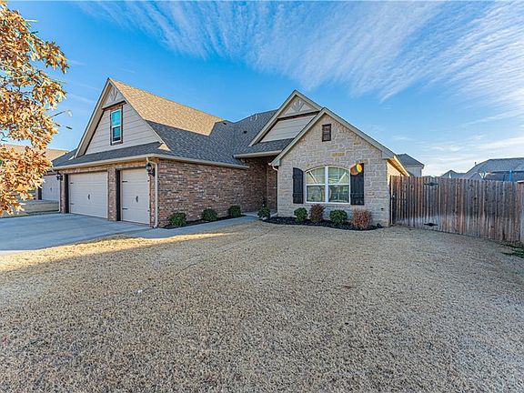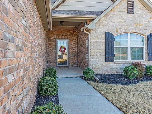 Gorgeous 4 bed, 3 bath home in the highly sought after Rush Brook Addition of Edmond. Step inside, & be greeted with an open & airy living concept, crown molding, hardwood floors, & a corner fireplace. The kitchen features a large eat-in island with white apron sink, a spacious pantry, gas range, stainless steel appliances and tons of storage with under cabinet lighting. Relax in the private master suite where you can wash away the day in the master bath with rain shower diverter, oversized tub & double vanity. 3 additional bedrooms & an upstairs bonus complete this functional floor-plan. Wake up and enjoy the Oklahoma sunrise on the east facing, extended patio, overlooking the large backyard. A three-car garage adds to the home's convenience and stunning curb appeal. Home is equipped with ATT Digital Life system lock on front door, front & back door sensors, WIFI thermostat, water leak sensor & 75 gallon hot water heater, as well as solar board roof insulation.