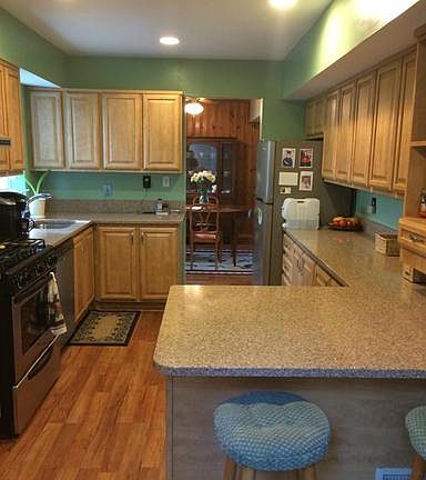 Many Updates (carpet 2012, gas furnace 2013, hardwoods 2012, skylight/roof window shades 2012, roof 2006. Also windows, kitchen, upstairs bath). Light and bright house with first floor family room, two wood stoves. Handicap accessible including roll in shower, wider doorways and first floor with two bedrooms. Private backyard includes a spacious deck off the kitchen and patio off the living room.