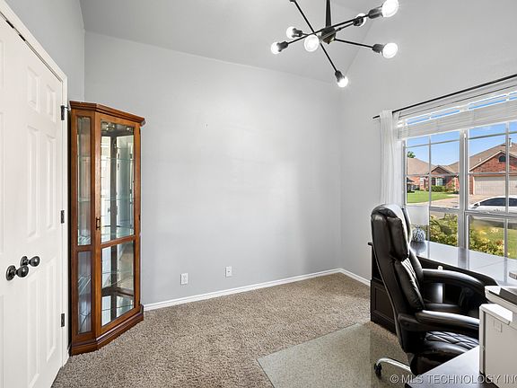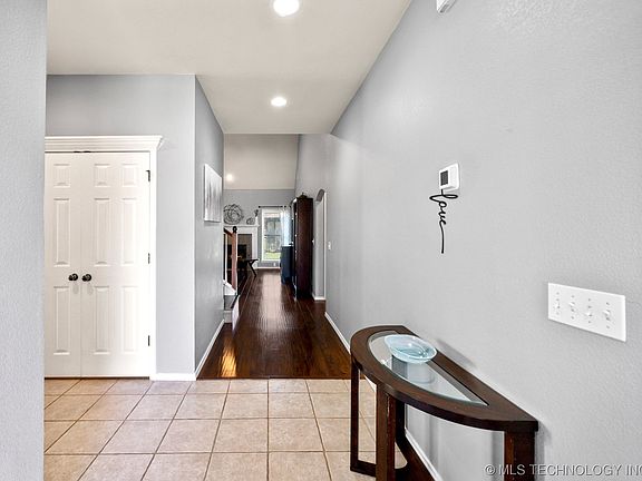 Beautiful 5 bedroom, 3 full bathrooms, 2363 sq ft home located in Broken Arrow Public Schools! Walk in and enjoy the gorgeous open living area with plenty of windows for all the natural lighting. Fresh paint and new light fixtures are featured downstairs. Kitchen cabinets have recently been refinished. New roof in 2020 and new AC unit in 2023. Master bedroom features double trey ceilings with an ensuite bathroom where the whirlpool tub awaits you after a long day! Walk in closet right off the master bathroom. Another bedroom with a full bathroom is also downstairs, which will be ideal for remote workers or guests! 3 large bedrooms are upstairs with an additional full bathroom. This home has several places inside for extra storage, and also includes a 2 car garage with built-in cabinets, work bench, storage lift, and epoxied floors. Come see why this house is the perfect place for you to call home!